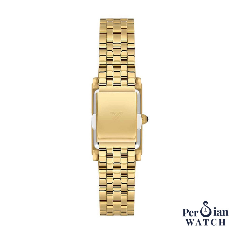 بند نیز فلزی/استیل و با رنگ طلایی طراحی شده است؛ روی مچ حس یک بند استیل کلاسیک را میدهد.