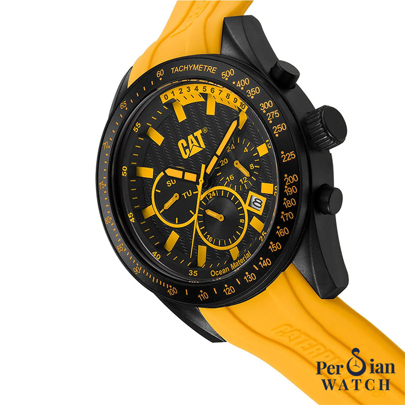 ساعت مردانه کاترپیلار مدل LQ.169.27.127 از سری “Black Yellow” با طراحی اسپرت و عملکرد بالا، ترکیبی از استایل مدرن و ویژگی‌های فنی برجسته را ارائه می‌دهد. این ساعت با قاب ۴۵ میلی‌متری ساخته‌شده از پلاستیک مقاوم (ABS)، بند سیلیکونی زرد رنگ، صفحه مشکی و زرد رنگ و مقاومت در برابر آب تا عمق ۱۰۰ متر (۱۰ ATM)، انتخابی مناسب برای مردانی است که به دنبال ساعتی با طراحی متفاوت و عملکرد دقیق هستند.
