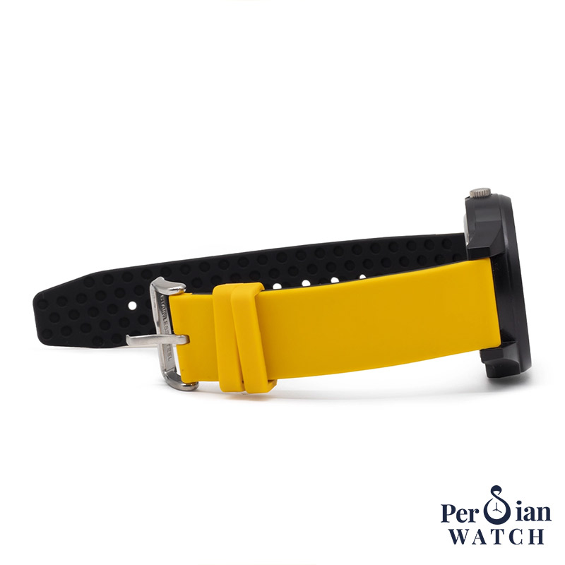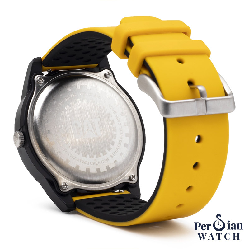 با CAT Insignia LJ.160.27.127 سراغ ساعتی برو که دقیقاً برای زندگی پرتحرک ساخته شده: قاب پلیکربنات/ABS بسیار سبک و مقاوم، بند سیلیکونی زرد نرم و بادوام و صفحه مشکی با خوانایی بالا. قلب ساعت یک موتور کوارتز دقیق است که دردسر سرویسهای مکرر را کم میکند، و مقاومت آبی ۱۰۰ متر خیالت را برای استفاده روزمره، باران و حتی شنا در استخر راحت نگه میدارد. شیشه معدنی مقاوم به خطوخش و قطر ۴۳ میلیمتری (با ضخامت حدود ۱۱.۶–۱۲ میلیمتر) تعادل خوبی بین استایل اسپرت و راحتی روی مچ ایجاد میکند. اگر ساعتی میخواهی که هم جانسخت باشد و هم جذابیت رنگی امضای CAT را داشته باشد، LJ.160.27.127 انتخابی مطمئن و اقتصادی است.